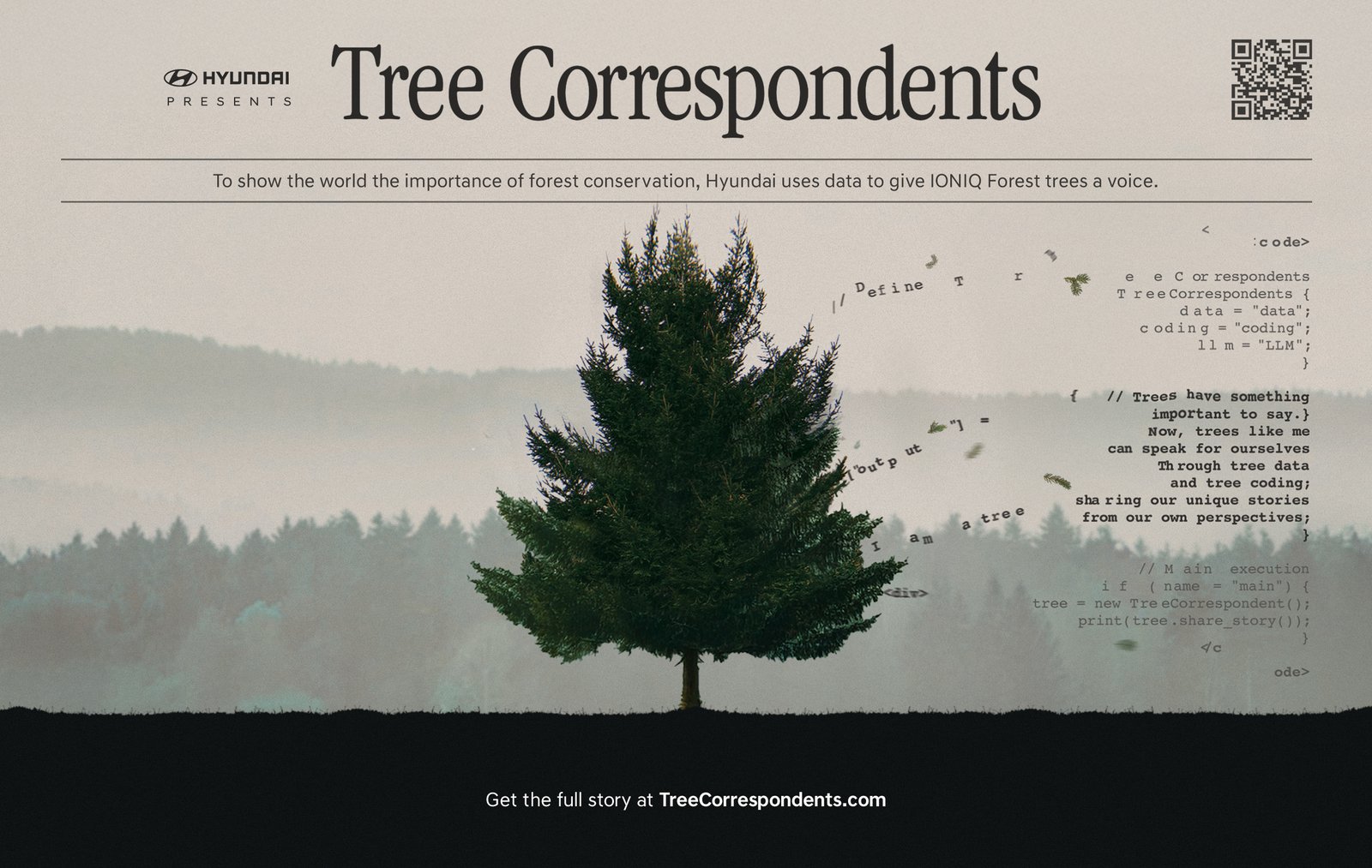 A campanha Tree Correspondents utiliza IA para contar a história das árvores em primeira pessoa, com base em dados ecológicos reais que foram transformados em narrativas usando Grande Modelo de Linguagem (LLM) personalizado. Sob o tema ‘Começando com o primeiro milhão’, a campanha reafirma o compromisso da Hyundai de continuar seus esforços ecológicos para além do marco de um milhão de árvores plantadas.